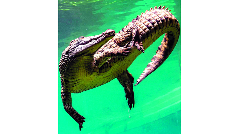 فقد بيّن مقطع فيديو نُشر على منصة «تيك توك» التمساح الصغير مستلقياً في قاع المسبح في منتجع «شيراتون غراند ميراج» في بورت دوغلاس.