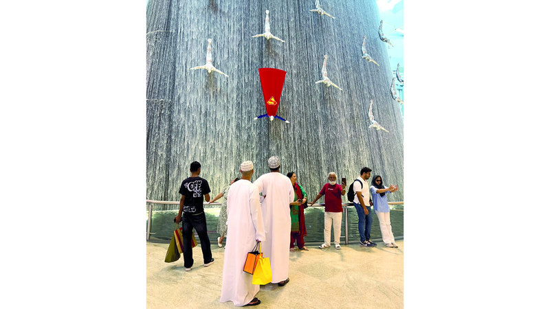 تُعدّ شلالات دبي مول، المعروفة أيضاً باسم «شلال الإنسان»، أحد أبرز المعالم الفنية في مركز «دبي مول» مجمع التسوُّق والترفيه الأكبر في العالم، ويبلغ ارتفاعها 24 متراً، وتمتد عبر أربعة طوابق، وتزدان الشلالات بنماذج من الغواصين المصنوعين من ألياف الزجاج، وكأنهم يغوصون بانسيابية وسط المياه المتدفقة، في تعبير فني عن أهمية وعراقة تراث الغوص على اللؤلؤ الذي شكّل جزءاً من هوية الإمارات قبل عصر النفط، واللافت حالياً وجود البطل الأسطوري سوبرمان بين هؤلاء الغواصين في مشهد جمالي يستقطب الزوّار والسياح لالتقاط الصور الفوتوغرافية ونشرها على منصات التواصل الاجتماعي.