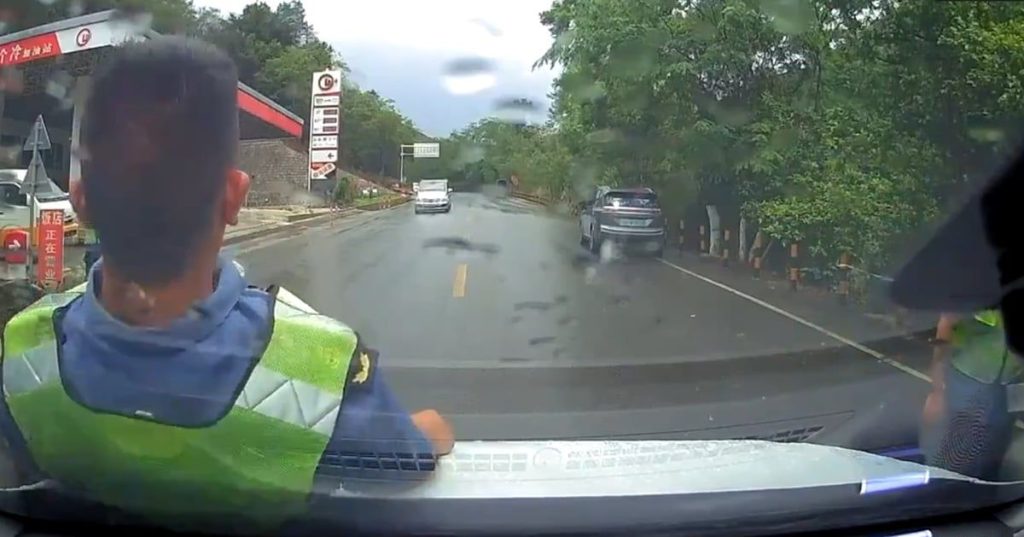 أقدم أحد عناصر الشرطة في الصين، في وموقف غريب، على إلقاء نفسه على سيارة كانت تقترب منه في أحد الشوارع .