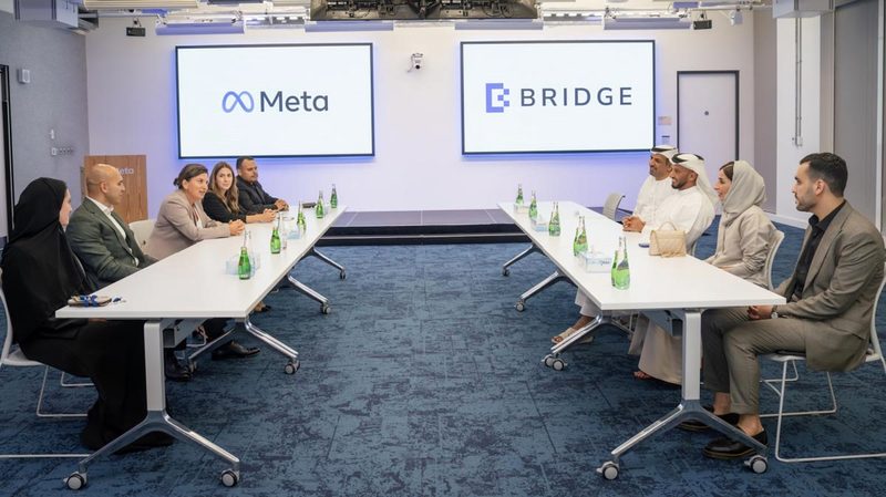 جاء ذلك خلال زيارة رئيس «بريدج»، عبدالله بن محمد بن بطي آل حامد، ونائب رئيس «بريدج»، الدكتور جمال الكعبي، لمقر «ميتا» الإقليمي بدبي، اجتمعوا خلالها مع عدد من كبار المسؤولين والمديرين في الشركة العالمية.