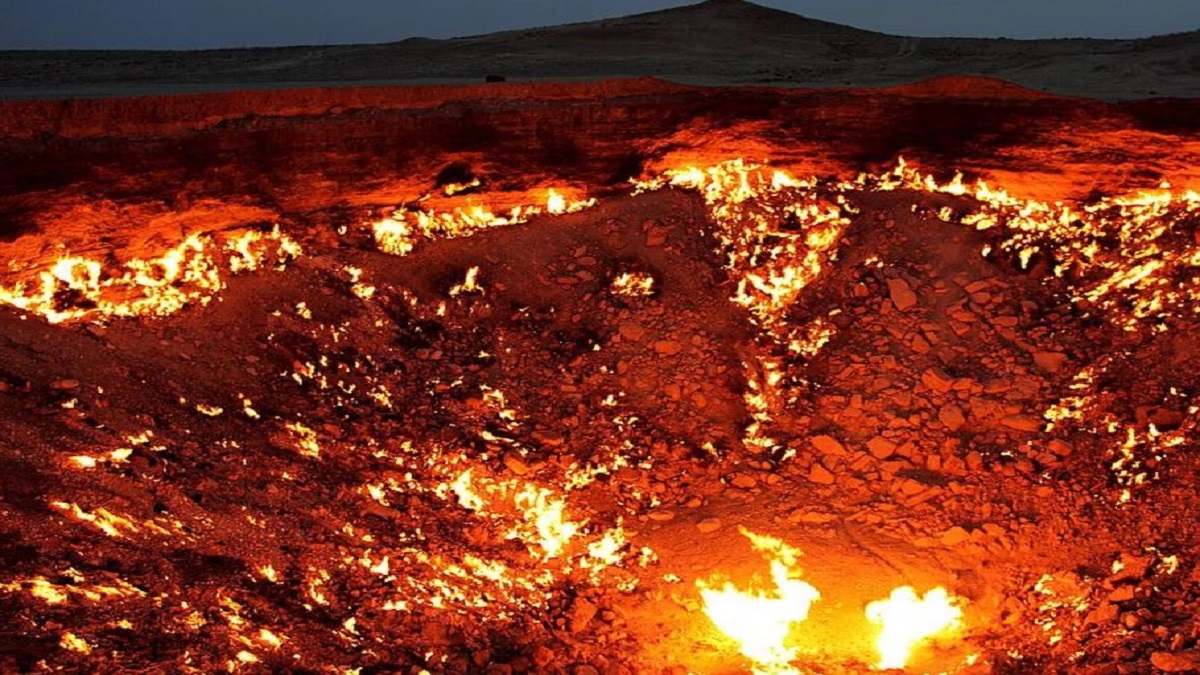 ففي قلب صحراء كاراكوم التركمانية، تقع فوهة دارفازا الغازية، التي تُعرف غالباً باسم «بوابة الجحيم». وذلك على مسافة 260 كيلومتراً شمال عشق آباد.