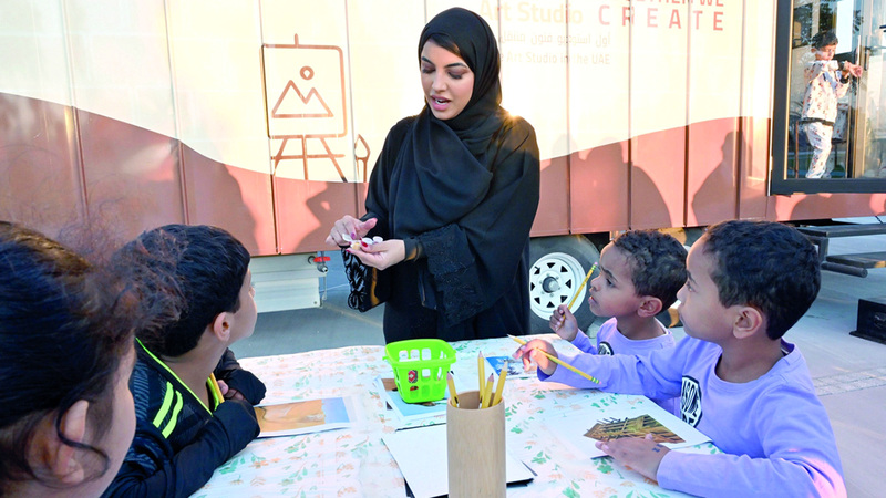 وأوضحت غالية المنصوري، الحاصلة على بكالوريوس الفنون البصرية من جامعة زايد ودرجة الماجستير في التربية الفنية من مدرسة معهد الفنون في شيكاغو بالولايات المتحدة، لـ«الإمارات اليوم»، أن فكرة إنشاء استوديو متنقل بدأت لديها منذ فتره طويلة عبر مشاركتها في العديد من الأنشطة الخاصة بتعليم الفنون والحرف التقليدية لأفراد المجتمع في مناطق مختلفة من الدولة، إذ لاحظت أن سكان المناطق النائية والبعيدة عن مركز المدينة لديهم تعطش واضح للفعاليات والبرامج الفنية والثقافية، ومن هنا جاءت فكرة الاستوديو حتى تصل لأكبر عدد ممكن من أفراد المجتمع من مختلف الفئات والأعمار في هذه المناطق، وتشجيعهم ليكونوا جزءاً من الحراك الفني والثقافي في الإمارات، وتسليط الضوء على المواهب الواعدة في كل مكان والمساعدة على صقلها وتطويرها.