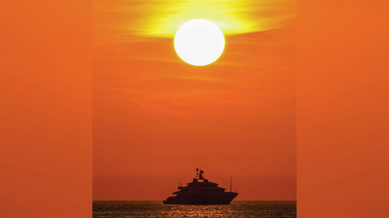 غروب على سواحل دبي الساحرة، حيث تترك الشمس توقيعها على آخر لوحاتها في ذلك النهار، معلنة ختام رحلة اليوم، وسط فيض غامر من الألوان المبهرة، يكسو الأفق والمياه الرائقة واليخت الفاخر الذي يتهادى على صفحة الخليج الهادئة، لتستمتع عيون روّاد شواطئ المدينة بلحظة من الجمال، تبعث على الهدوء والسكينة، وتدعو الجميع إلى بدايات جديدة تشبه ذلك «المشهد الذهبي» المرسوم بـ«ريشة الشمس».
