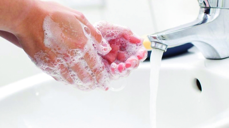 • ينبغي غسل اليدين لمدة تراوح بين 20 و30 ثانية بواسطة الصابون.