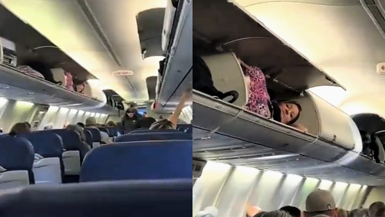 حصد مقطع فيديو على عدد ضخم من المشاهدات، بعد أن قررت فتاة أميركية النوم في مخزن الحقائب بالطائرة.