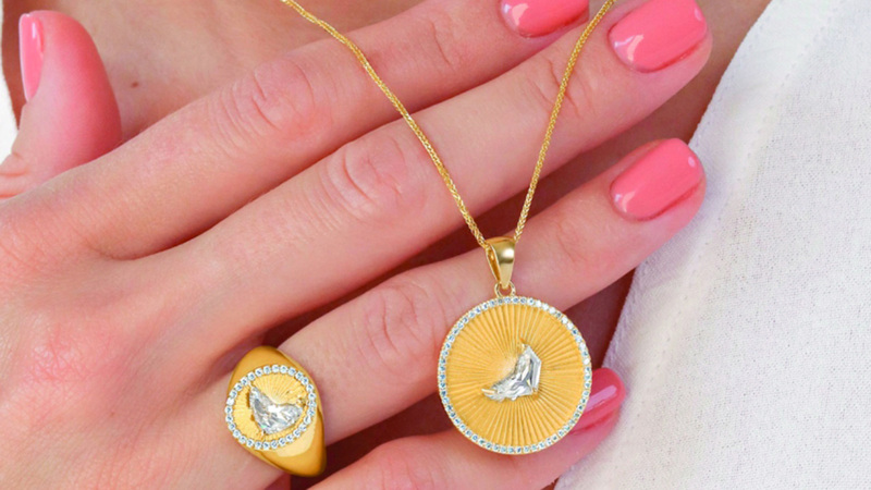 أبرز ما يميز هذه المجموعة هو قطعة الألماس الرائعة التي تتوسط الخاتم والقلادة وتأتي على شكل خريطة الإمارات المميزة، لتُصبح كل قطعة بمثابة تكريم لتراث البلاد الغني ورؤيتها الثاقبة للمستقبل واحتفاءً بيومها الوطني. تم العمل على كل قطعة بدقة شديدة لتخرج إلى النور من الذهب الأصفر عيار 18 قيراطاً يُزيّنها الألماس المُصنّع في المختبر ذو الجودة الاستثنائية. تزن قلادة الإمارات، ذات الإصدار الخاص، 7.3 غرامات وتحتوي على إجمالي قيراط من الألماس المُصنّع في المختبر. أما الخاتم، فيزن أربعة غرامات وهو مُرصّع بـ0.9 قيراط من ألماس المختبر. تأتي القطعتان بشكل دائري تتوسطهما قطعة ألماس على شكل خريطة الإمارات ويُزيّنهما ماسات صغيرة الحجم ترمز إلى وحدة الإمارات وتضامنها.
