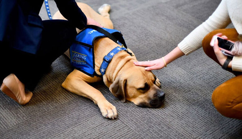 وفي قاعات أحد أكثر المطارات ازدحاما في العالم، تتجول 5 كلاب أملا في توفير تجربة سفر خالية من التوتر للركاب ومساعدتهم على الاسترخاء.