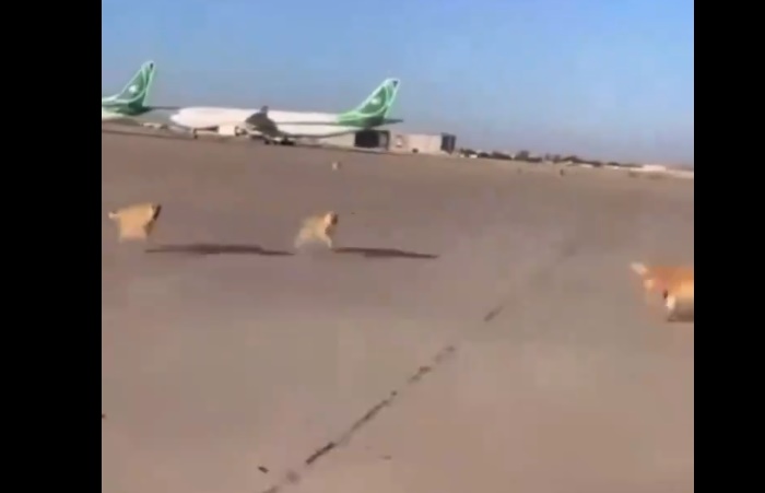 انتشر عبر مواقع التواصل الاجتماعي مقطع فيديو ظهرت فيه عشرات الكلاب وهي تجوب أرض ومدرج مطار بغداد الدولي، تلاحق سيارات والحافلات داخل المطار.
