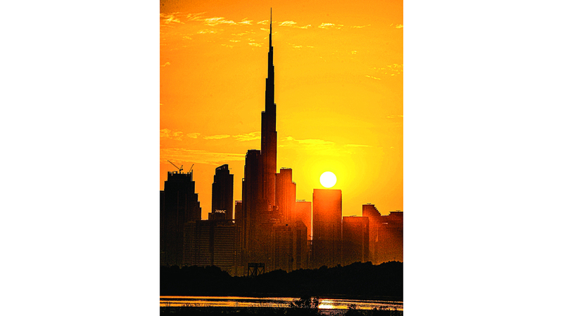 في تلك اللحظات الفريدة والمشهد الساحر، تتقاطع أشعة الضوء بلونها البرتقالي وهالة الشمس قبل أن تختفي خلف أبراج وناطحات السحاب في دبي، ومن «مانغروف هايد» في رأس الخور ترسم الشمس وأفق دبي لوحة مبدعة، تتجدد كل يوم في إمارة لا تعرف إلا تقديم الجمال، والدهشة التي تتجدد بأشكال مختلفة.