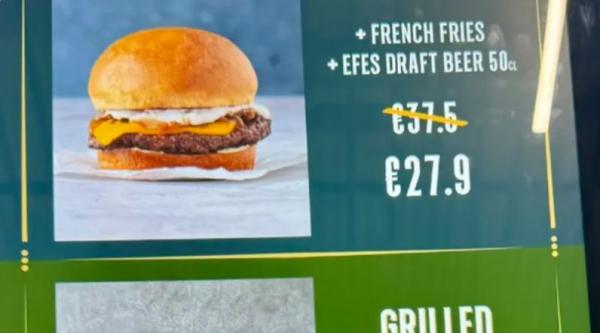 ولفتت القائمة التي نشرها رانجر الانتباه، حيث وصل سعر وجبة هامبرغر مع البطاطس المقلية وعلبة مشروب صغيرة إلى 27.9 يورو (أي ما يعادل 1,351.21 ليرة تركية). وكانت أرخص وجبة مقابل 19 يورو.