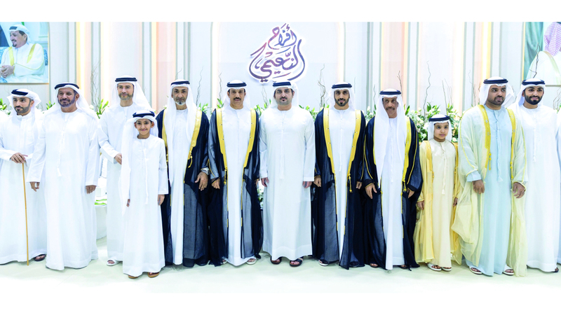 حضر سموّ الشيخ مكتوم بن محمد بن راشد آل مكتوم، النائب الأول لحاكم دبي نائب رئيس مجلس الوزراء وزير المالية، أمس، حفل الاستقبال الذي أقامه الشيخ الدكتور محمد بن عبدالله بن سلطان النعيمي، رئيس دائرة الميناء والجمارك بعجمان، بمناسبة زفاف نجله الشيخ راشد إلى كريمة الشيخ عبدالله بن علي بن راشد النعيمي، وذلك بقاعة البيت متوحد في عجمان.