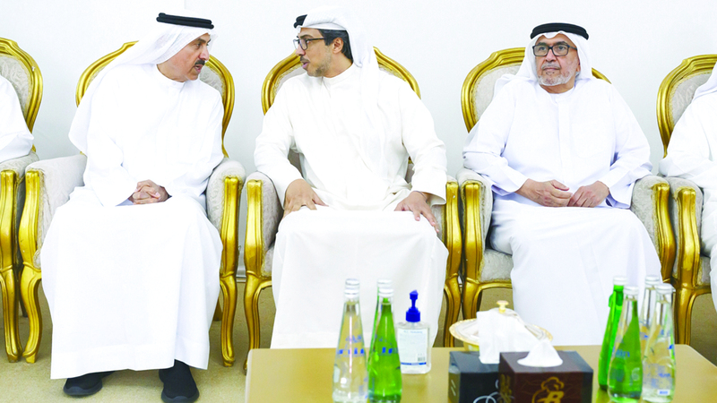 قدّم سموّ الشيخ منصور بن زايد آل نهيان، نائب رئيس الدولة نائب رئيس مجلس الوزراء رئيس ديوان الرئاسة، أمس، واجب العزاء إلى رئيس المجلس الوطني الاتحادي، صقر غباش، في وفاة والدته، وذلك خلال زيارة سموّه مجلس العزاء في منطقة سيح البريرات في رأس الخيمة.