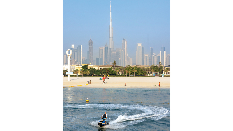 لقطة يتطاير منها رذاذ الموج، ونسمات بحر جميرا، لتجسد ملمحاً من ملامح صيف دبي النابض بالحياة والحيوية والسعادة، حيث تستقطب شواطئ المدينة الجميلة عشّاق الرياضات البحرية، ومحبي الـ«جيت سكي» وصوت محركه الهادر، والأنشطة التي ترفع هرمون الأدرينالين، خصوصاً حينما تبدو في المشهد معالم أيقونية، كما الحال هنا مع برج خليفة الشاهق، وناطحات السحاب التي تطل من بعيد.