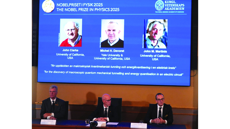 أعلنت الأكاديمية الملكية السويدية للعلوم، أمس، فوز العلماء: جون كلارك وميشيل ديفوريه وجون مارتينيس بجائزة نوبل في الفيزياء هذا العام، «لتجاربهم التي كشفت عن تطبيقات فيزياء الكم».