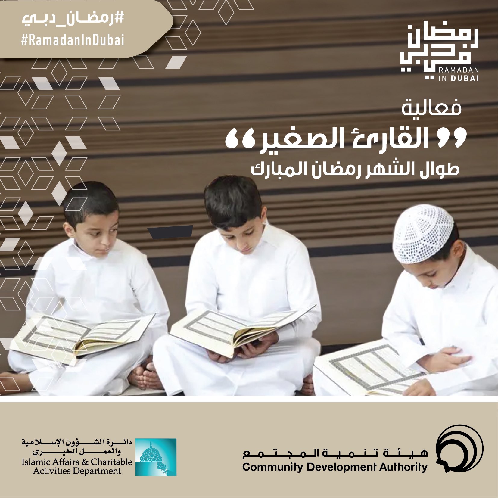 تزامناً مع شهر رمضان المبارك، وفي إطار حملة “رمضان في دبي”، كشفت هيئة تنمية المجتمع في دبي عن إطلاق مبادرة “القارئ الصغير” والتي ستقام في مجالس أحياء دبي التابعة للهيئة بالتعاون مع دائرة الشؤون الإسلامية والعمل الخيري في دبي، وتستمر على مدار أيام الشهر الفضيل. وتسعى المبادرة إلى استثمار أيام الشهر الفضيل في تعزيز ارتباط الأطفال بالقرآن الكريم وتحسين قدرتهم على تلاوته وتجويده وتدبّر معانيه بما يتناسب مع مرحلتهم العمرية.
