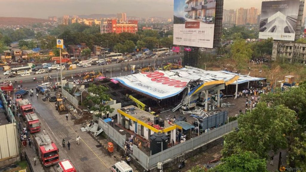 قالت السلطات في مدينة مومباي الهندية إن 14 شخصا على الأقل لقوا حتفهم وأصيب العشرات بعد أن سقطت عليهم لوحة إعلانية ضخمة خلال عاصفة رعدية.