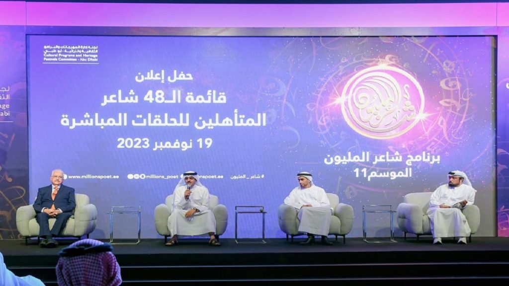 وأعلنت بمسرح شاطئ الراحة في أبوظبي، قائمة الشعراء الـ48 المتأهلين إلى الحلقات المباشرة، للموسم الجديد، بحضور عبدالله مبارك المهيري، نائب رئيس لجنة إدارة المهرجانات والبرامج الثقافية والتراثية بأبوظبي، وعبيد خلفان المزروعي، مدير إدارة التخطيط والمشاريع في اللجنة، وعبدالله بطي القبيسي، مدير إدارة الفعاليات والاتصال في اللجنة، وأعضاء لجنة التحكيم: الدكتور سلطان العميمي، والدكتور غسان الحسن، وحمد السعيد، وعضوي اللجنة الاستشارية للبرنامج بدر صفوق، وتركي المريخي، والشعراء المتأهلين.