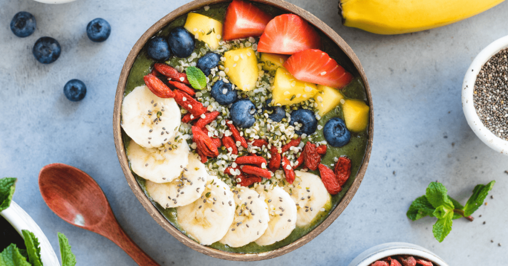 يمكن مزج الزبادي غير المُحلى أو الحليب النباتي مع فواكه مثل الموز أو المانجو أو الكيوي، ثم أضف الجرانولا أو بذور اليقطين أو الجوز.