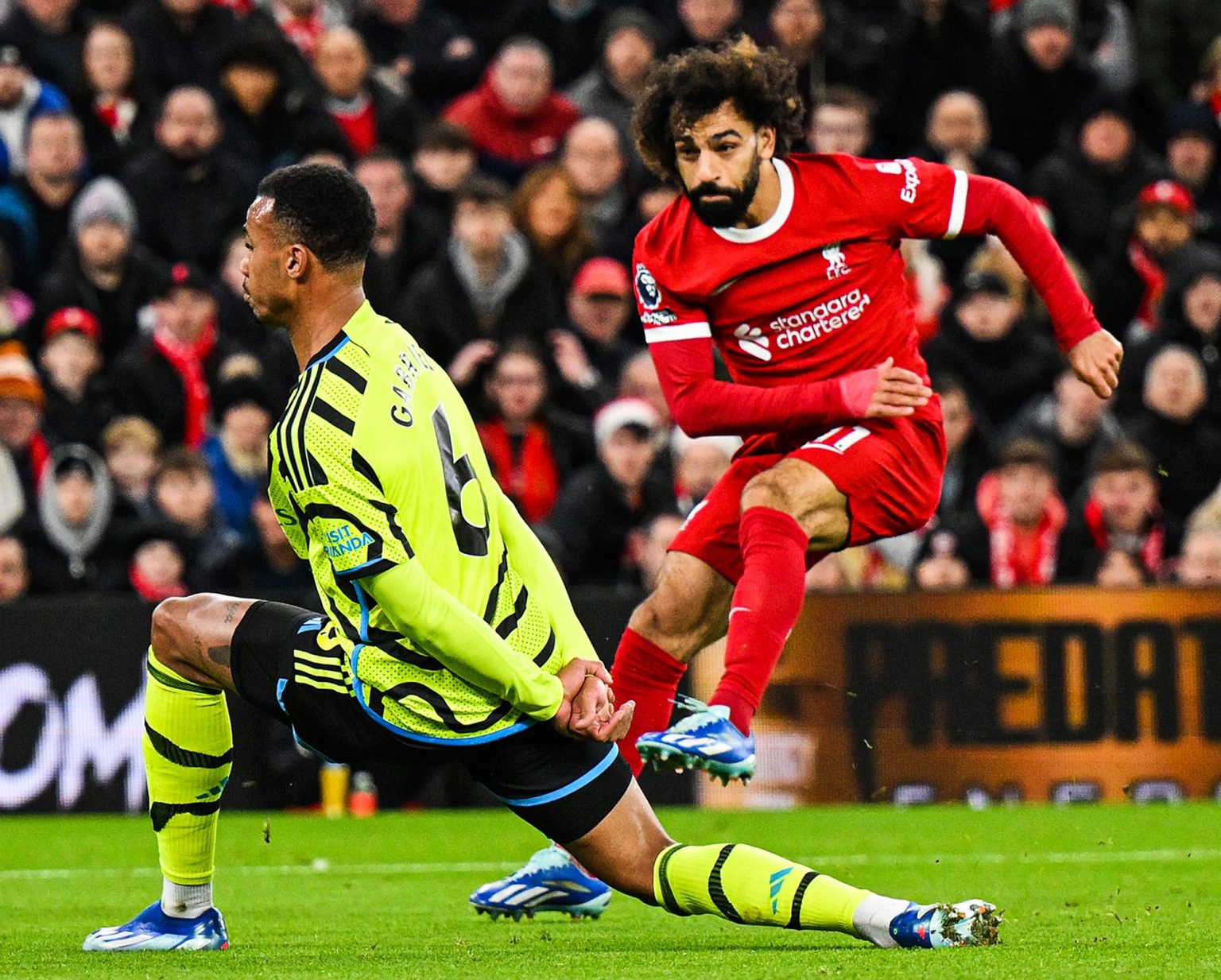 وتقدم آرسنال عن طريق غابرييل ماغالايس في الدقيقة الرابعة، فيما سجل محمد صلاح هدف التعادل لليفربول في الدقيقة 29.