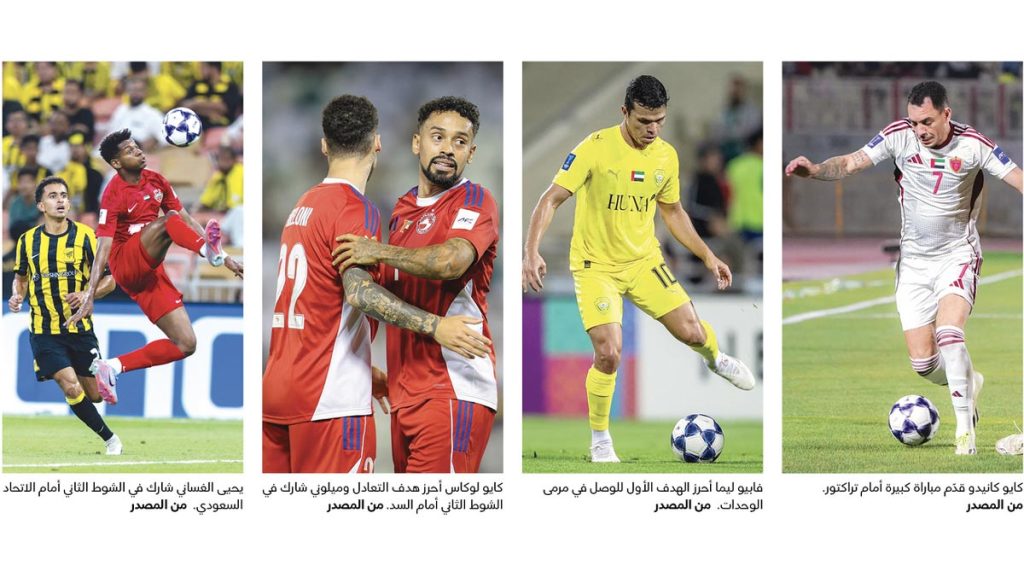 وفي البطولة ذاتها، فرض الشارقة التعادل 1-1 على السد القطري في الدوحة، وكان التوقيع للنجم الدولي كايو لوكاس الذي سجل هدف التعادل، ليعكس الدور الحيوي الذي يمكن أن يلعبه اللاعب في المرحلة المقبلة مع المنتخب. أما الوحدة فقد خرج بتعادل سلبي أمام تراكتور الإيراني في تبريز، حيث برزت صلابة خطه الخلفي وواقعية أدائه، في حين واصل الوصل تألقه بفوز مستحق خارج أرضه على الوحدات الأردني 2-1 في «دوري أبطال آسيا 2»، ليتقدم خطوة إضافية في المنافسة، وقد وقّع الدولي فابيو ليما الهدف الأول للفريق، ليؤكد جاهزيته لقيادة الخط الهجومي للمنتخب الوطني.