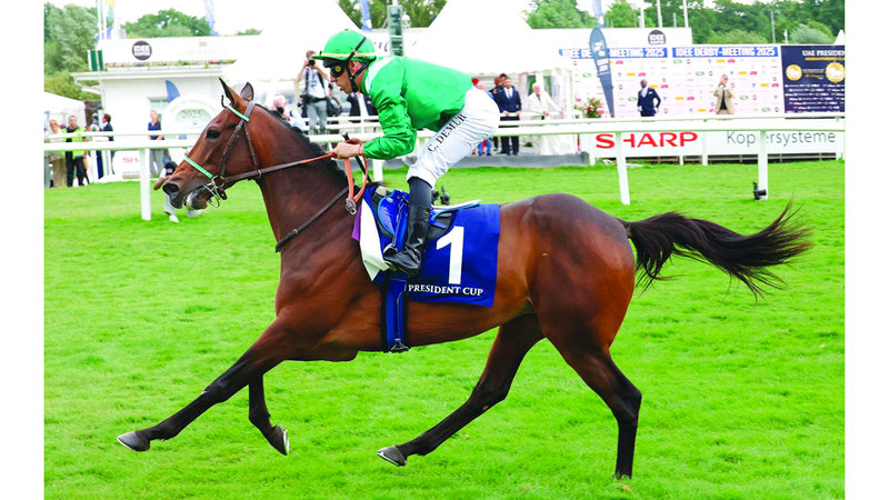 وضرب الجواد «إش إم الشاهين»، للمالك هلال العلوي، موعداً جديداً مع المجد، بفوزه الثاني في سباقات الكأس الغالية بعد المحطة الإيطالية، رافعاً رصيد انتصاراته إلى تسعة من أصل 10 مشاركات، وتمكن صاحب التصنيف 122 من تقديم أداء بطولي رائع تحت إشراف المدربة إليزابيث بيرنارد جان فرانسوا، وقيادة الفارس كريستيان ديمورو في السباق الذي أُقيم لمسافة 1600 متر، ضمن الفئة الثانية للخيول من عمر أربع سنوات فما فوق، وسط مشاركة نخبة من أفضل مرابط الخيول العربية في ألمانيا وأوروبا.