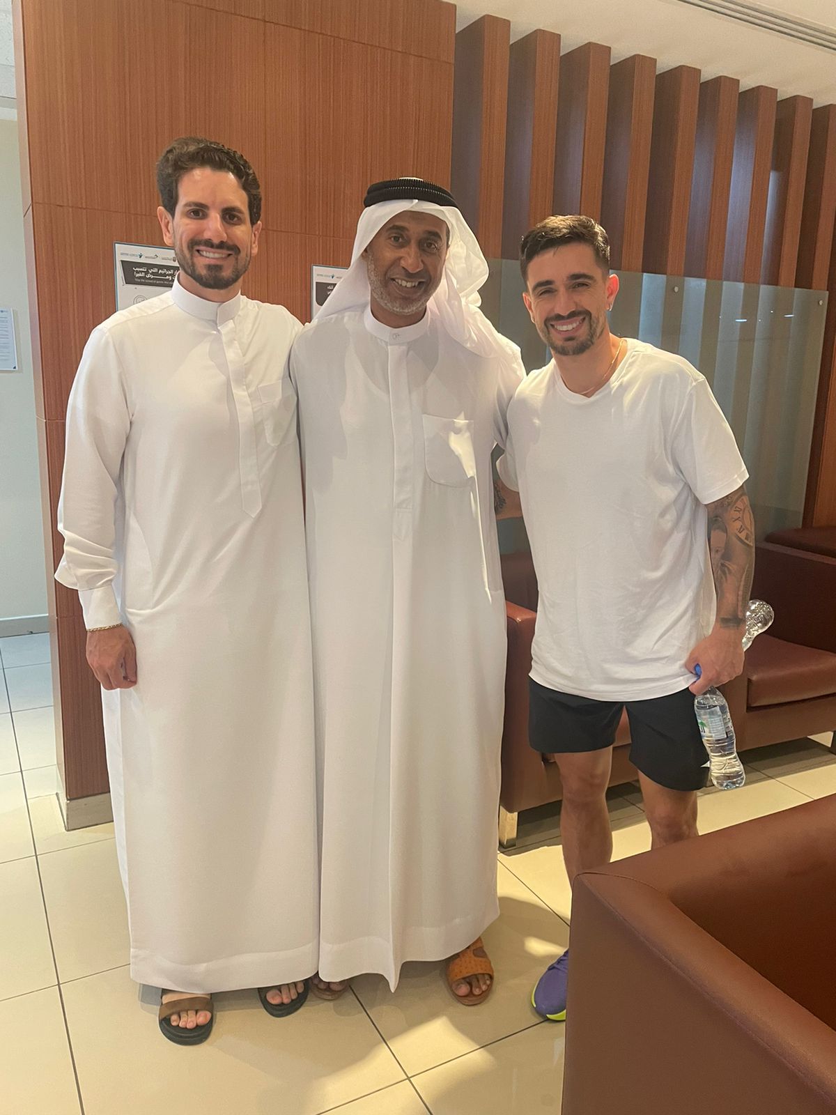 تنشر «الإمارات اليوم» صورة حصرية يظهر فيها اللاعب البرازيلي إيغور كورنادو مع عضو شركة الشارقة لكرة القدم ورئيس اللجنة الفنية علي ثاني، وسط أنباء عن اقتراب الشارقة بنسبة كبيرة من التعاقد مع نجمه السابق الملقب بـ«الساحر»، قادماً من نادي كورينثيانز البرازيلي في أولى صفقات النادي للموسم الجديد 2025 – 2026.
