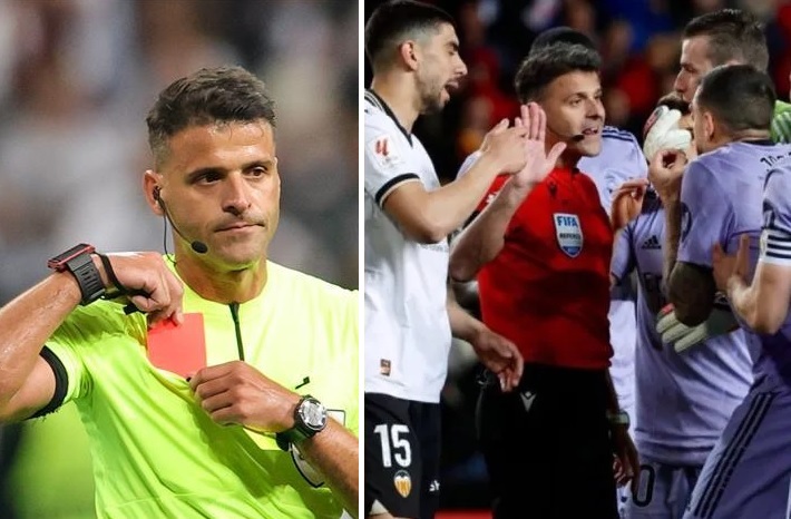 تعرض الحكم الإسباني جيل مانزانو إلى العقوبة من قبل لجنة الحكام في “الليغا” بعد قراره المثير للجدل بإنهاء مباراة ريال مدريد وفالنسيا على استاد “ميستايا” أثناء تسجيل النادي الملكي هدف الفوز وسط أجواء مشحونة ترتب عليها طرد الإنجليزي جود بيلينغهام لاعب الريال لاعتراضه على القرار الذي حرمه قيادة فريقه للفوز.
