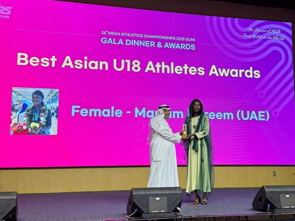 توّجت البطلة الإماراتية مريم كريم بجائزة أفضل لاعبة آسيوية تحت 18 عاماً (فئة السيدات)، خلال حفل توزيع جوائز الاتحاد الآسيوي لألعاب القوى لعام 2025، الذي أُقيم في مدينة جومي الكورية الجنوبية اليوم الأحد، بحضور نخبة من المسؤولين والرياضيين من مختلف أنحاء آسيا.