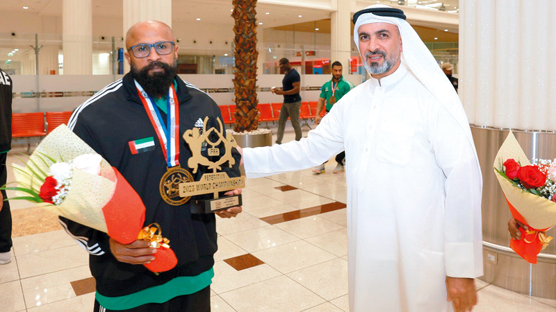وحظي لاعب المنتخب الوطني لبناء الأجسام خالد بخيت الفلاسي، باستقبال لافت عقب وصوله إلى مطار دبي الدولي، قادماً من مدينة برشلونة الإسبانية التي استضافت بطولة العالم، إذ كان على رأس مستقبليه الأمين العام للاتحاد، محمد المرّي.