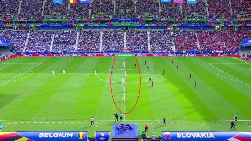 وبرز منتخبا إيطاليا وسلوفاكيا في لعب ركلة البداية بهذه الطريقة، إذ لعب «الأزوري» ركلة البداية بعدما اصطف ثمانية لاعبين في منتصف الملعب بشكل عرضي، مقابل وقوف لاعبين فقط خارج دائرة المنتصف، أثناء لعب ركلة البداية، بينما طبّق منتخب سلوفاكيا الطريقة نفسها أمام بلجيكا، ولعب الفريق ركلة البداية بوقوف سبعة لاعبين في منتصف الملعب، ووجود ثلاثة لاعبين فقط في وسط ملعبهم.