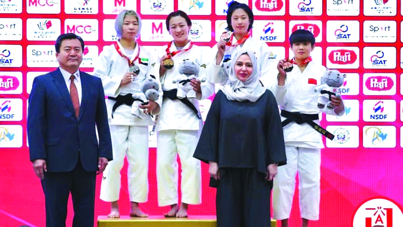 وشهد مراسم التتويج عضو اللجنة الأولمبية الوطنية أمين السر العام لاتحاد الجودو أمين صندوق الاتحاد الدولي ورئيس البعثة الدكتور ناصر التميمي، وعضو اللجنة الأولمبية الوطنية أمينة صندوق الاتحاد الآسيوي للجودو أمل بوشلاخ.