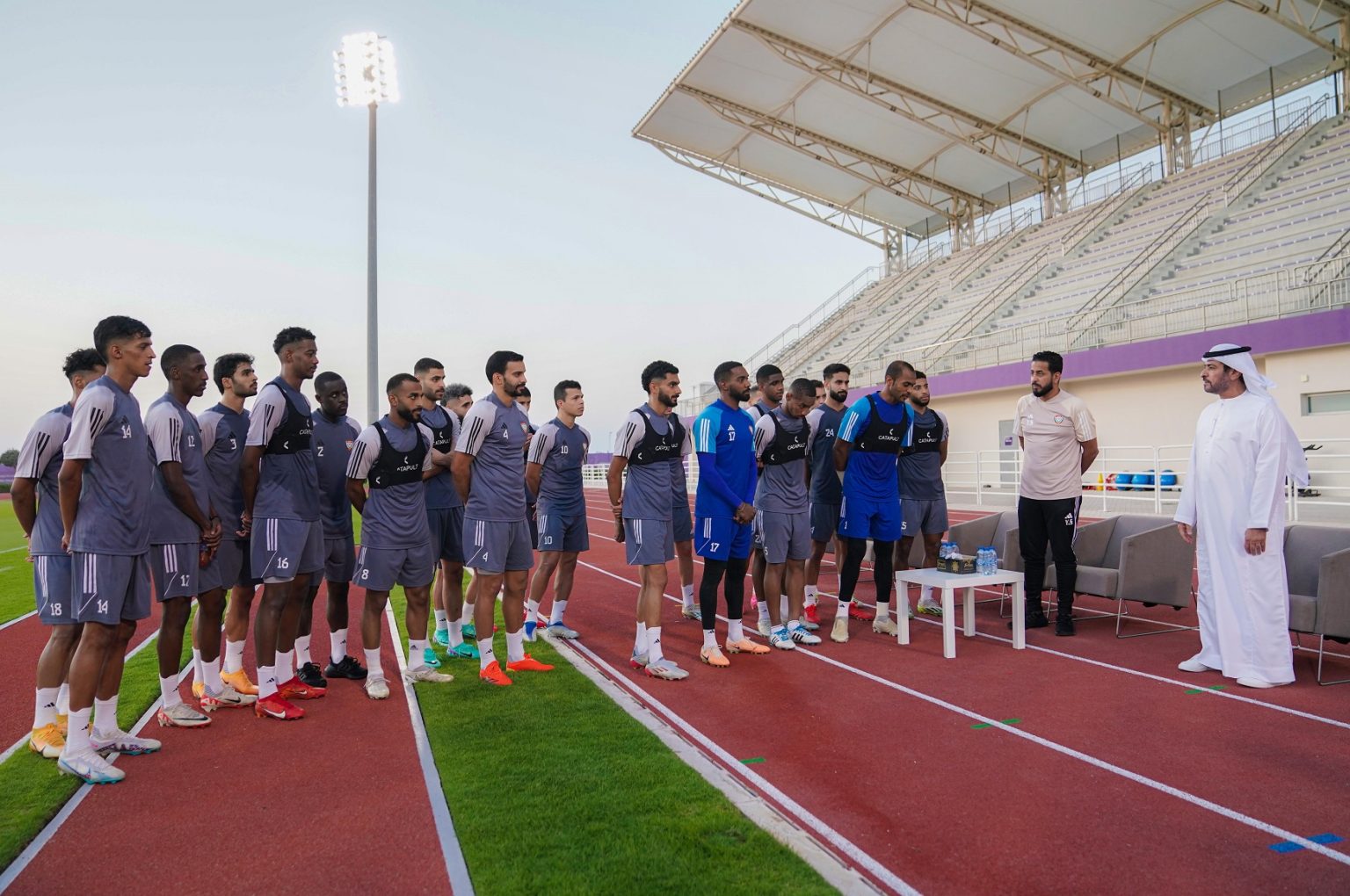 شهد الشيخ حمدان بن مبارك آل نهيان رئيس اتحاد الإمارات لكرة القدم اليوم تدريبات منتخبنا الوطني في ملعب جامعة نيويورك بالعاصمة أبوظبي، حيث المعسكر الإعدادي لنهائيات كأس آسيا المقررة في قطر الشهر المقبل.