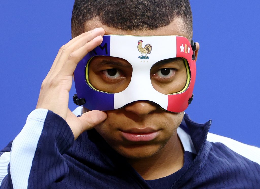 وشارك مبابي قائد المنتخب في التدريبات الخميس وهو يرتدي قناعاً بألوان العلم الفرنسي الأزرق والأبيض والأحمر، وأجرى تمارين الجري خلال أول ربع ساعة من الحصة التدريبية المفتوحة أمام الإعلام، ولكنه كان يحاول كثيراً تعديل قناعه، مما يدلّ على بعض الانزعاج من هذه الحماية الضرورية التي تسمح له بالعودة إلى المباريات.
