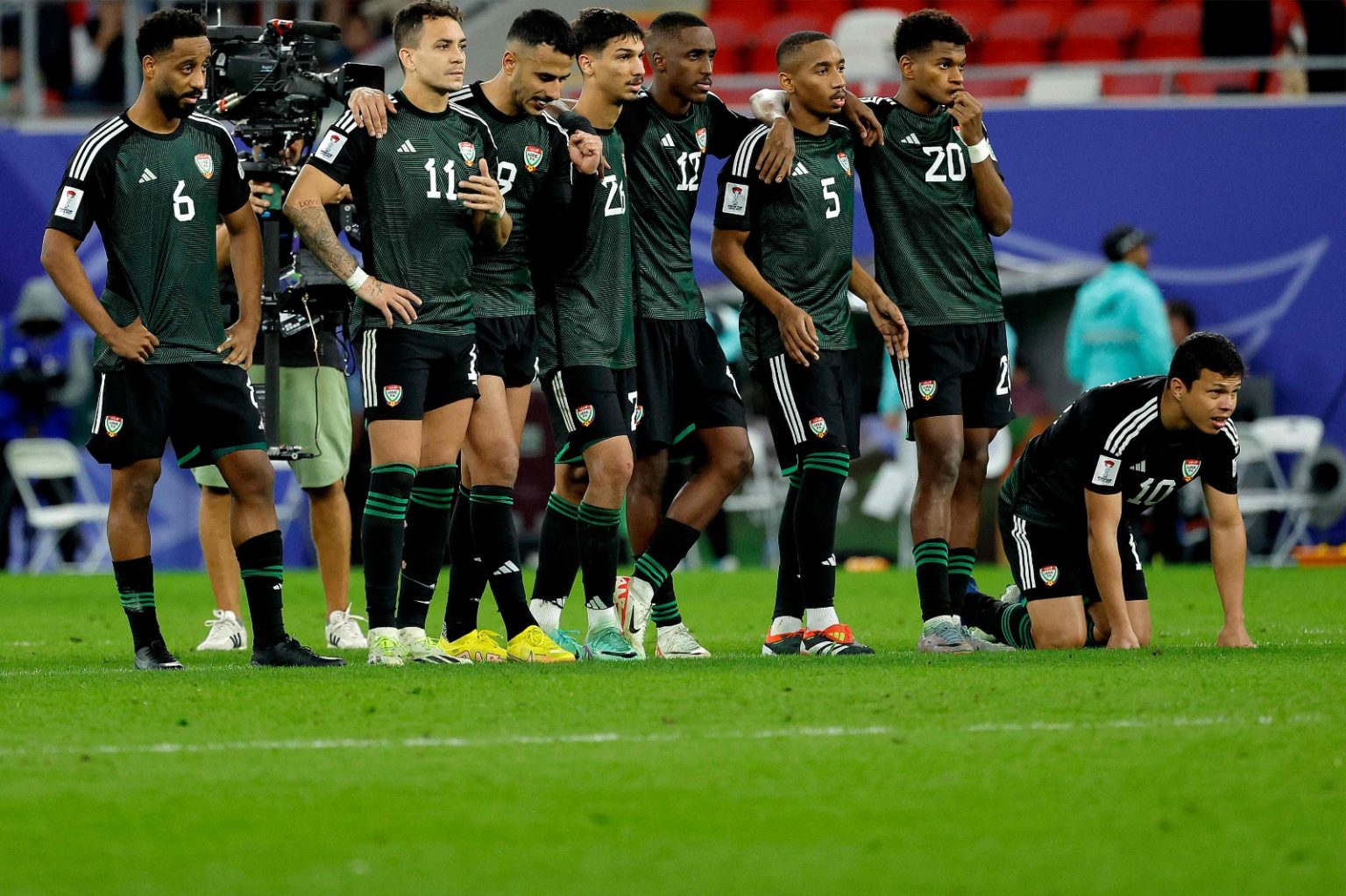 أما الامارات التي فشلت في تكرار التأهل الى ربع النهائي للمرة الثالثة على التوالي بعد نسختي 2015 و2019، فاحتلت المركز الثاني في المجموعة الثالثة برصيد 4 نقاط أيضاً بفوزها على هونغ كونغ 3-1 وتعادلها مع فلسطين 1-1 وخسارتها أمام إيران 1-2.