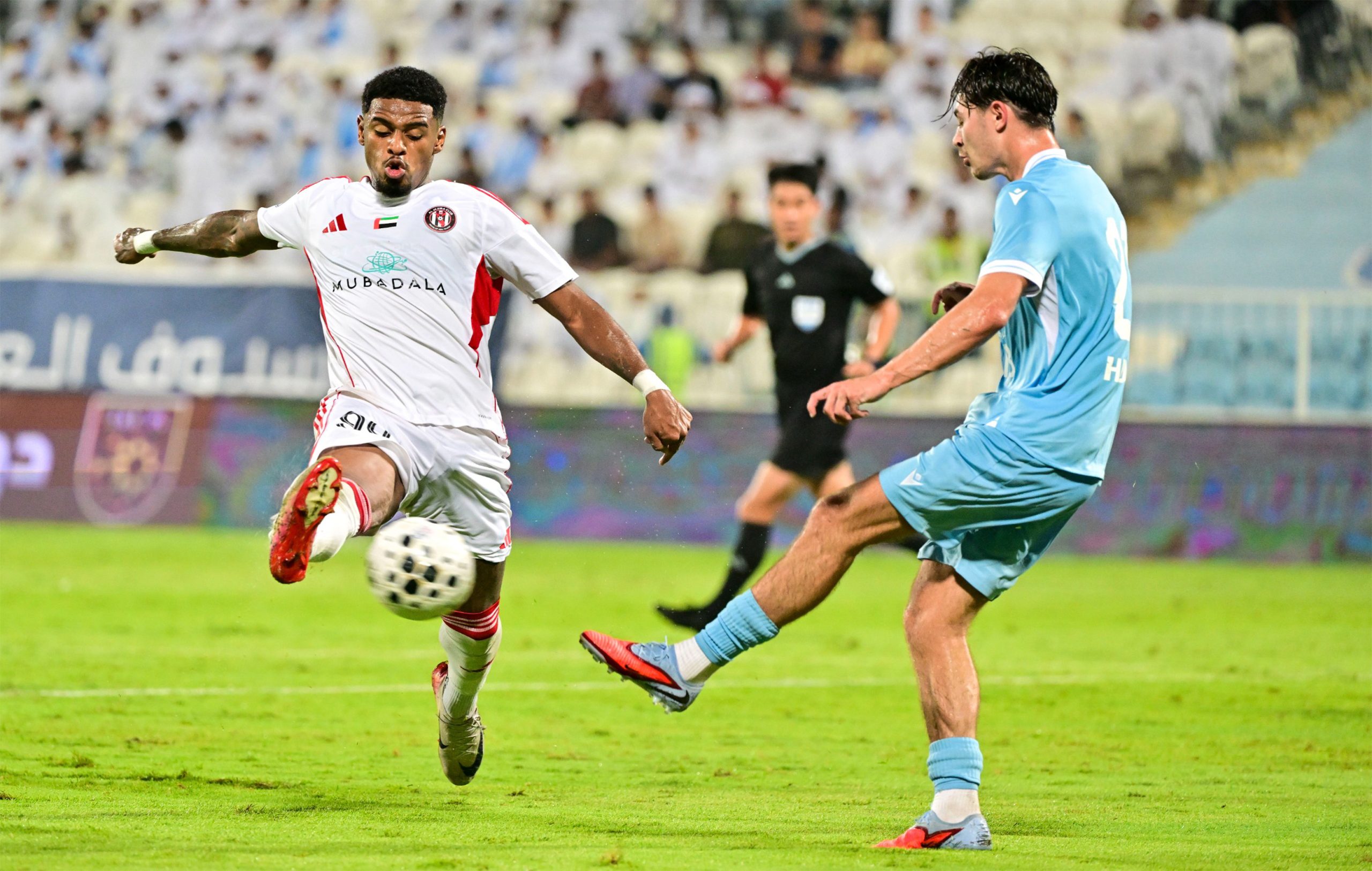 وزادت معاناة أصحاب الأرض حين حصل العطاس على بطاقة حمراء مباشرة إثر عرقلته لميلو في حالة انفراد صريح، ليحتسب الحكم مخالفة نفذها عبدالله رمضان بنجاح، مضيفاً الهدف الثالث في الدقيقة 45+7، ليحسم “فخر أبوظبي” المباراة عملياً قبل صافرة نهاية الشوط الأول.