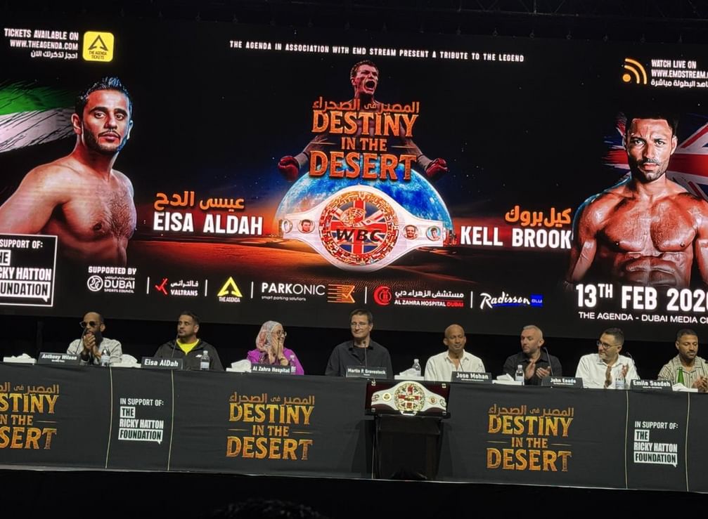 تستضيف دبي بطولة “المصير في الصحراء” للملاكمة الاحترافية، التي تجمع بين البطل الإماراتي عيسى الدح، أول ملاكم محترف في تاريخ الدولة، والبطل البريطاني العالمي كيل بروك، حامل لقب الاتحاد الدولي للملاكمة “IBF” سابقاً، وذلك على لقب بطولة الاتحاد العالمي للملاكمة “WBC”، وذلك في 13 فبراير 2026.