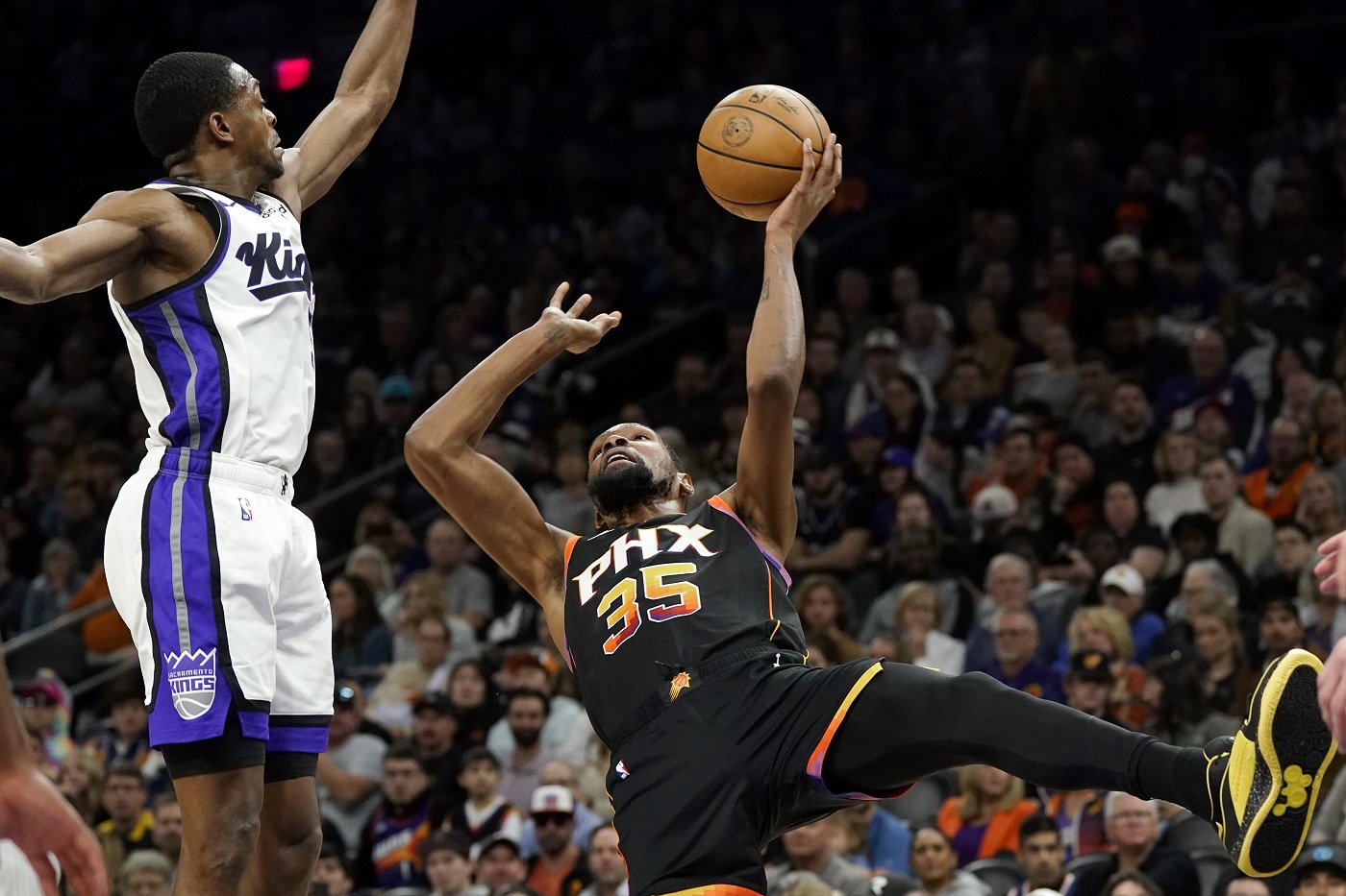 سجل كيفن دورانت رميتين حرتين قبل 1.8 ثانية من النهاية ليقود فينكس صنز للفوز على ضيفه سكرامنتو كينجز 119-117 في دوري كرة السلة الأميركي للمحترفين الليلة الماضية.