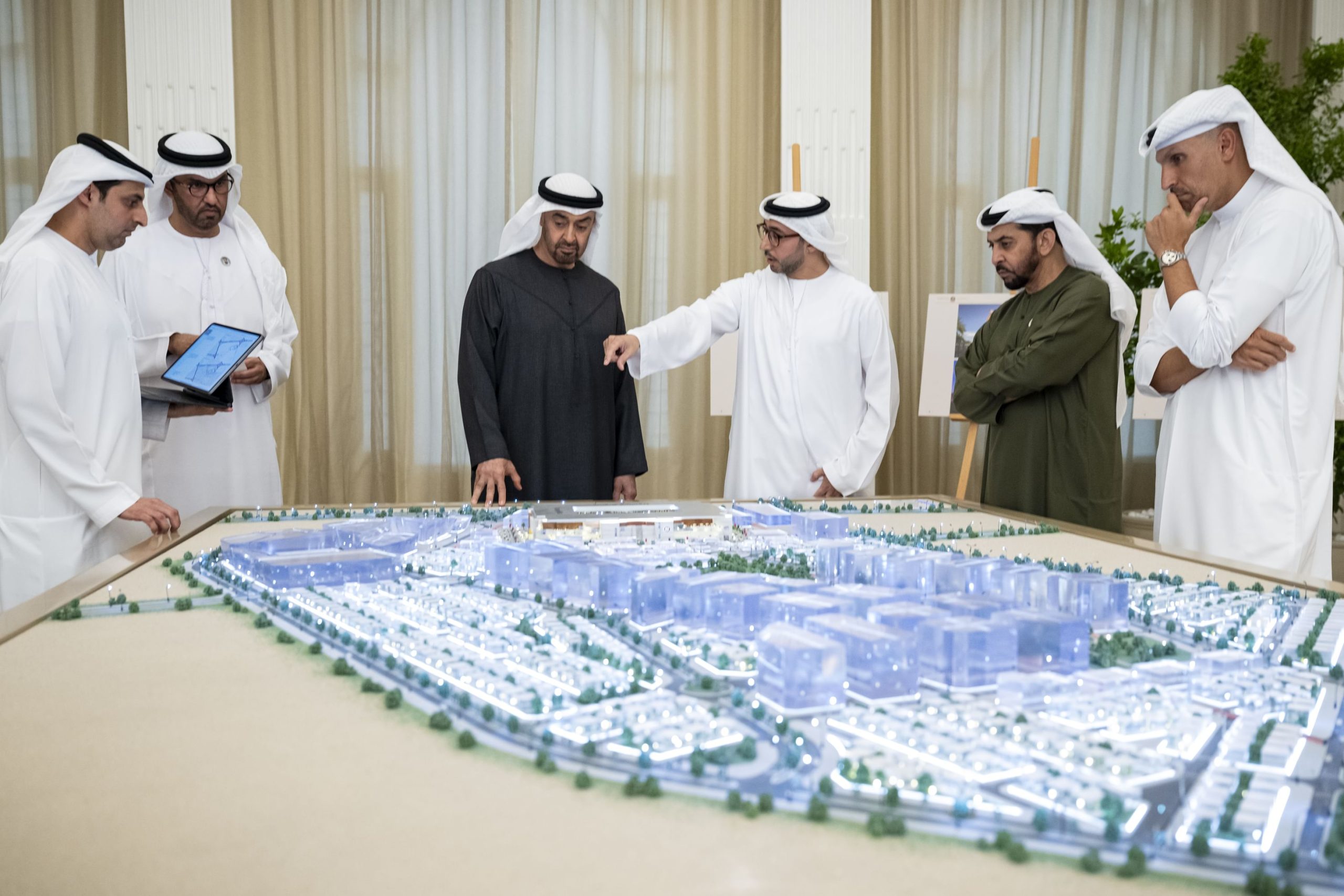 حضر عرض المشروع في مجلس قصر البحر.. سمو الشيخ حمدان بن زايد آل نهيان ممثل الحاكم في منطقة الظفرة والدكتور سلطان بن أحمد الجابر، وزير الصناعة والتكنولوجيا المتقدمة والدكتور أحمد مبارك المزروعي رئيس مكتب رئيس الدولة للشؤون الإستراتيجية رئيس مكتب أبوظبي التنفيذي وخلدون خليفة المبارك رئيس جهاز الشؤون التنفيذية وعدد من كبار المسؤولين.