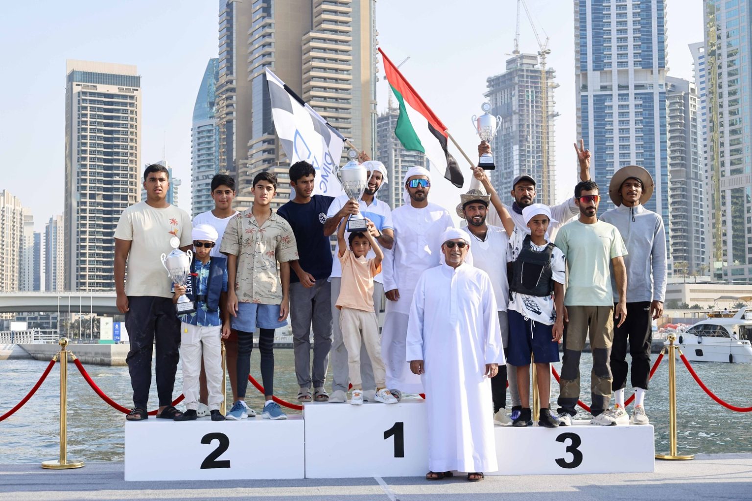 واحتضن «دبي هاربر» مراسم التتويج في ختام المنافسات، وقام مدير إدارة الشؤون الرياضية في نادي دبي الدولي للرياضات البحرية محمد المري، بتتويج الفائزين، إذ جاء في المركز الثاني المحمل «الشقي 96» للمالك والنوخذة بطي مصبح الغشيش المري، وحصد المركز الثالث، المحمل «الطف 9» للمالك محمد راشد الرميثي، وبقيادة النوخذة يوسف أحمد الحمادي.