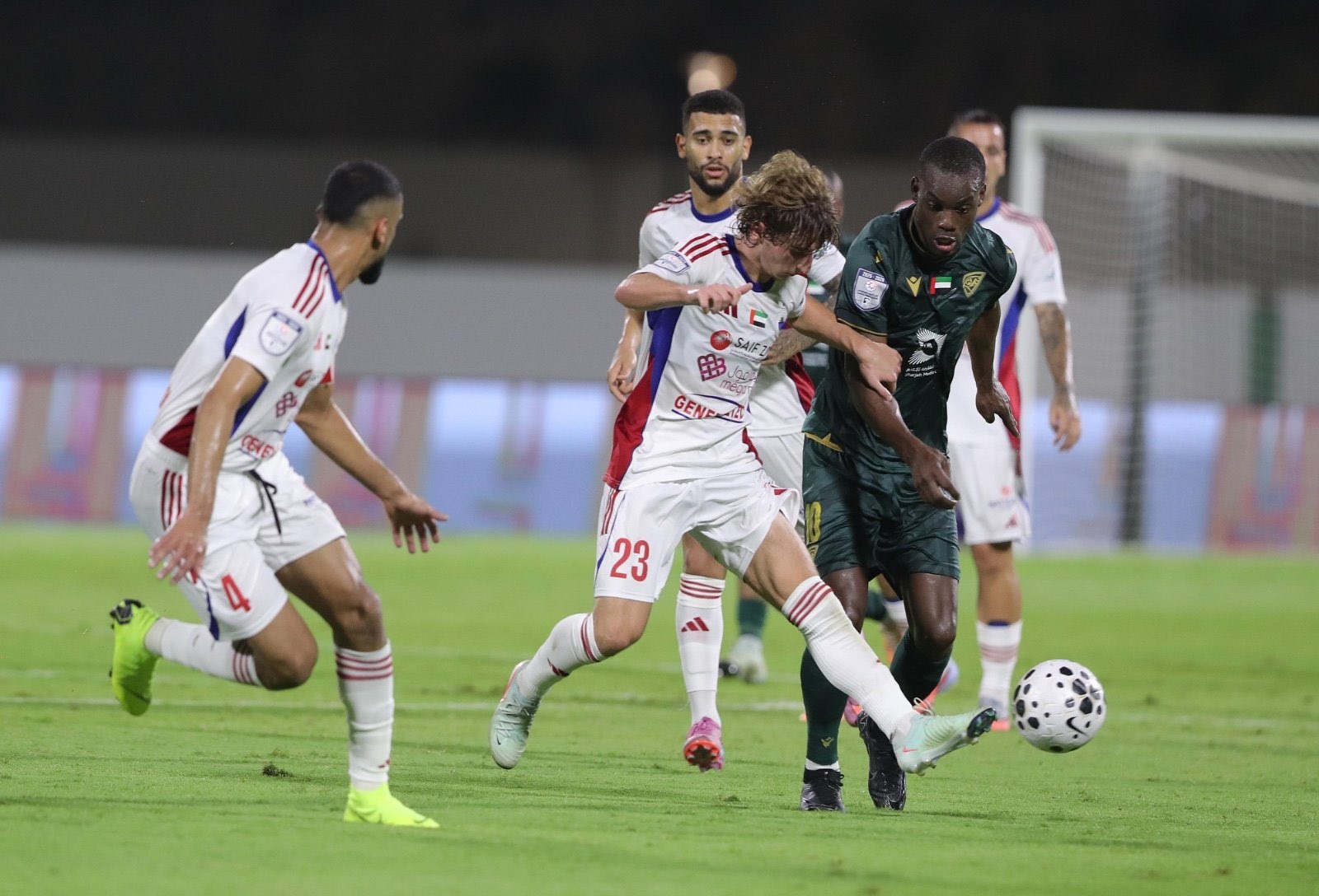 ونجح الشارقة في تقليص الفارق سريعاً عبر البرازيلي ماركوس ميلوني من ركلة جزاء في الدقيقة 59، ثم عاد الألباني راي ماناج ليخطف التعادل في اللحظات الأخيرة من المباراة من ركلة جزاء ثانية في الدقيقة 9+90.
