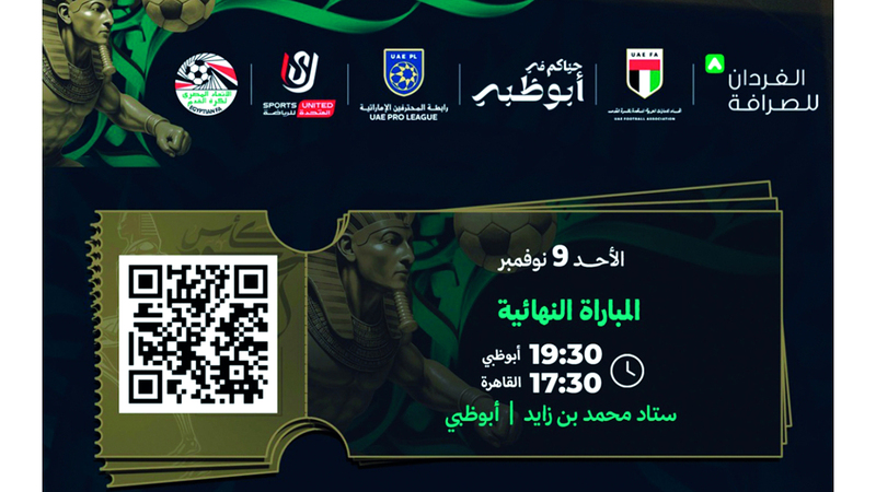 أعلنت رابطة المحترفين الإماراتية طرح تذاكر حفل ومباراة نهائي بطولة السوبر المصري، المقررة إقامتها الأحد، التاسع من نوفمبر المقبل، في استاد محمد بن زايد في أبوظبي، والتي تجمع الفائزين من مباراتي نصف النهائي.