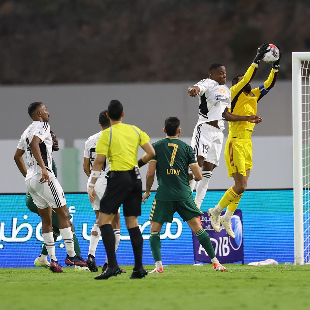 وافتتح المهاجم الكاميروني روكي مارسيانو أهداف فريقه عجمان في الدقيقة 27 بعد جملة تكتيكية رائعة وصلت إليه الكرة في مواجهة المرمى لم يتوانى في وضعها في الشباك، لكن أصحاب الأرض لم يتأخروا كثيراً في أدراك التعادل الذي جاء بواسطة البرازيلي تياجو دي ليونكو في الدقيقة 34 من ركلة جزاء.