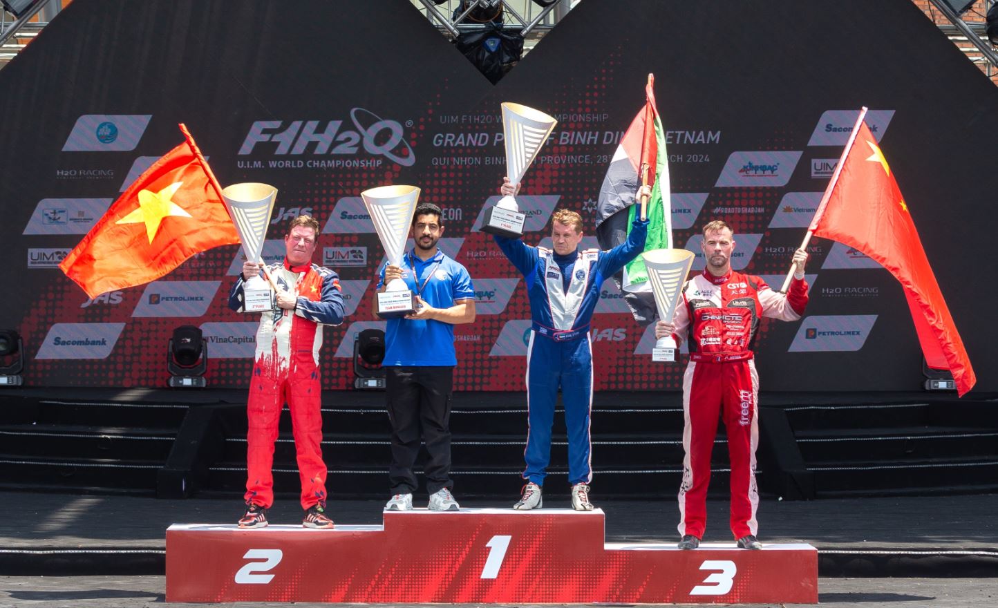 توج زورق «فيكتوري 4» بقيادة المتسابق السويدي إريك ستارك اليوم بطلا لجائزة فيتنام الكبرى للزوارق السريعة في ثاني جولات مونديال «الفورمولا1»، والتي جرت في مقاطعة كوي نون – بينه دينه بمشاركة نخبة الفرق العالمية، تتقدمها فرق الإمارات على متن زوارق فرق فيكتوري وأبوظبي والشارقة.
