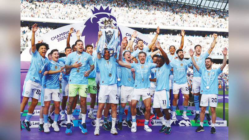 دوّن مانشستر سيتي اسمه في تاريخ كرة القدم الإنجليزية بعدما بات أول فريق يتوج بلقب الدوري للمرة الرابعة على التوالي، وذلك بفوزه على ضيفه وست هام 3-1، أمس، في الجولة الأخيرة، منهياً الموسم بفارق نقطتين أمام أرسنال.