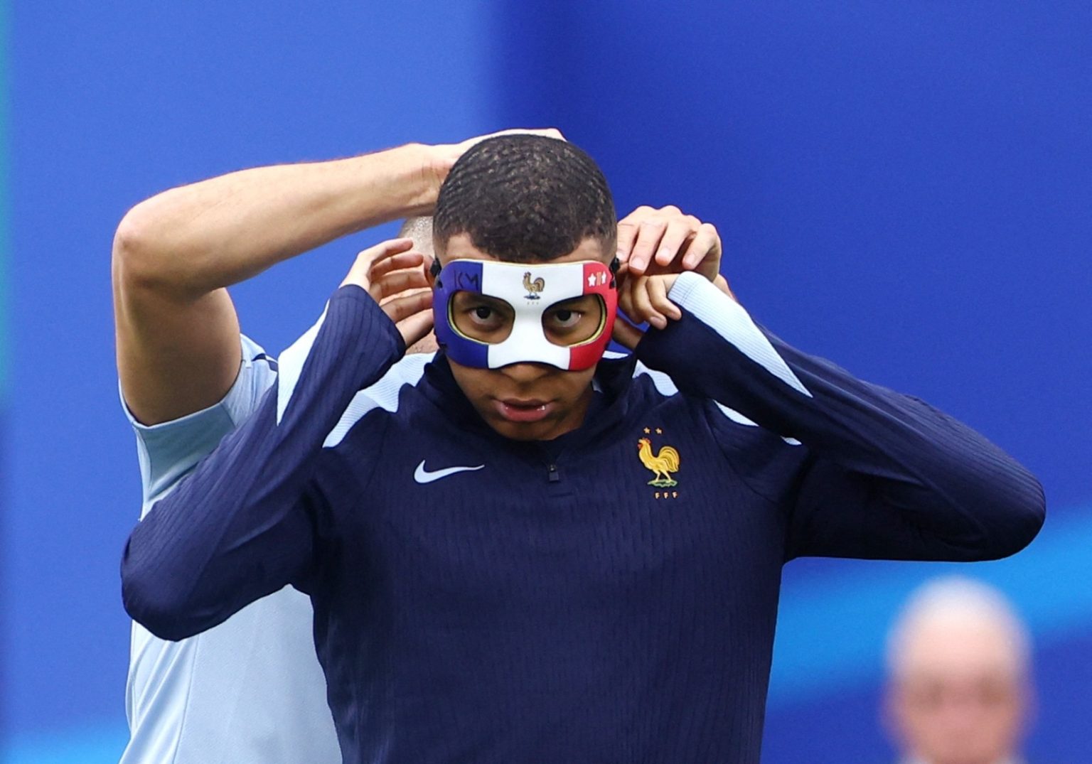 وتعرض مبابي المنتقل حديثا لصفوف ريال مدريد الإسباني لكسر في الأنف خلال الفوز على النمسا بهدف دون رد في افتتاح مشوار الديوك بالبطولة القارية ، لكنه شارك في حصة تدريبية كاملة مع الفريق مرتديا واق يحمل ألوان العلم الفرنسي.