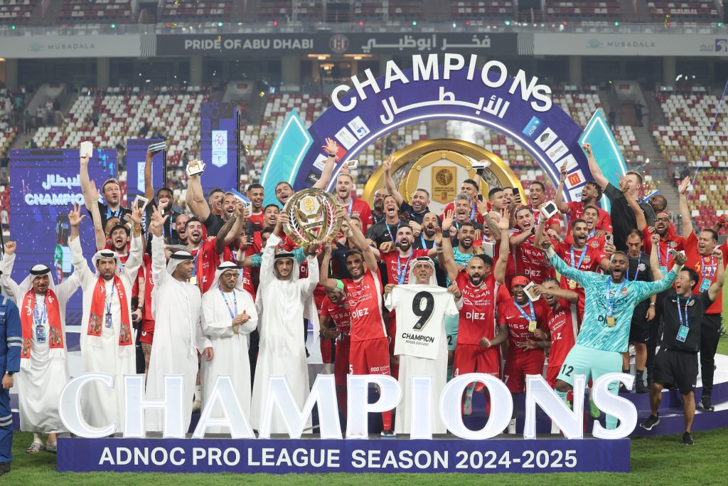 ومع صافرة نهاية المباراة، انطلقت احتفالات لاعبي شباب الأهلي داخل أرضية الملعب وسط فرحة عارمة للجمهور، الذي زحف إلى العاصمة أبوظبي للمشاركة في تتويج «فرسان دبي»، الذي دوّن اسمه في تاريخ كرة القدم الإماراتية بعدما بات أول فريق يتوّج بأربعة ألقاب في موسم واحد، بعدما فاز بلقب الدوري وكأس رئيس الدولة، وكأس السوبر، إلى جانب درع السوبر الإماراتي – القطري. ونجح شباب الأهلي في إنهاء البطولة بالصدارة برصيد 63 نقطة جمعها من الفوز في 19 مباراة والتعادل في ست، وخسارة مباراة واحدة فقط.