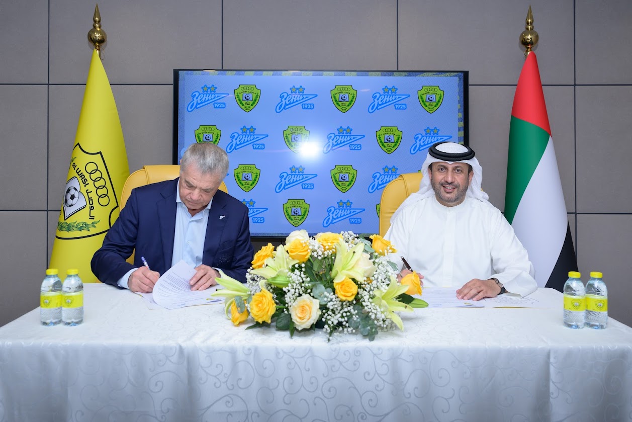أبرم نادي الوصل وزينيت سانت بطرسبرغ الروسي يبرمان مذكرة تفاهم لتعزيز التعاون وتطوير كرة القدم.