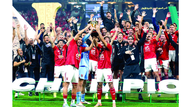 وكان الأهلي قد فاز باللقب للمرة الخامسة على التوالي، والـ16 في تاريخه، بعد تغلبه على غريمه الزمالك 2-0، أمس، على استاد محمد بن زايد في أبوظبي، وسط حضور جماهيري كبير تجاوز 30 ألف متفرج، وحمل الهدف الأول توقيع المغربي أشرف بن شرقي في الدقيقة (44)، ثم أضاف مروان عطية الهدف الثاني (71).