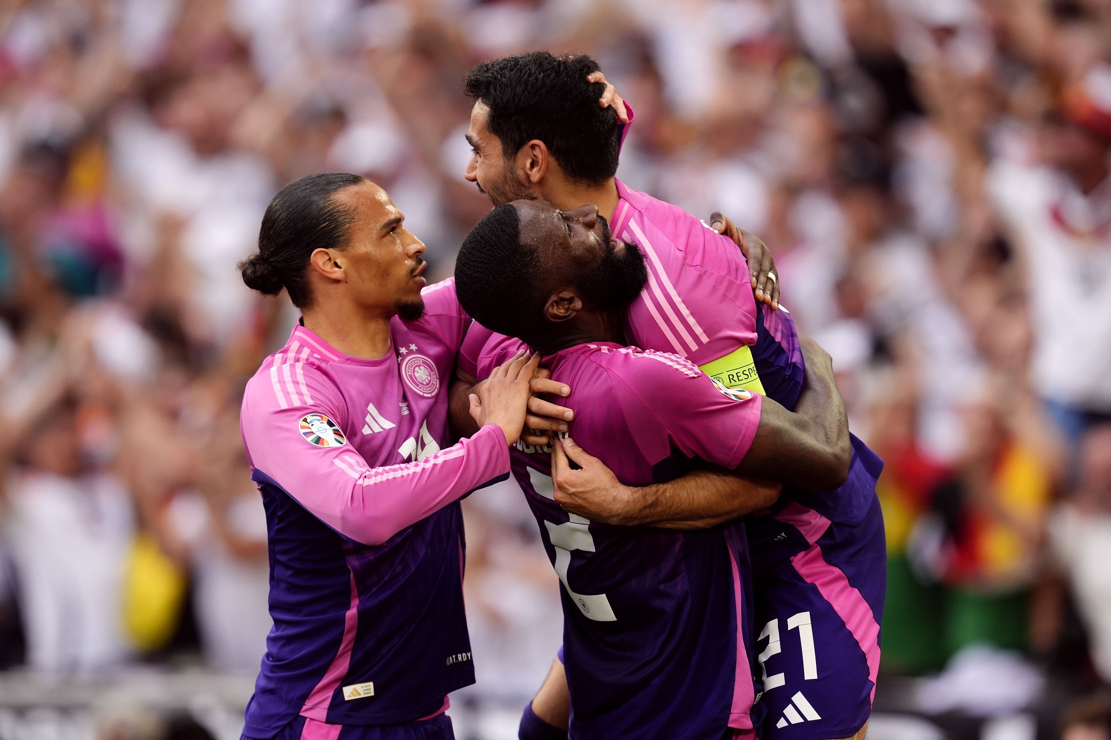 ويراهن المنتخب الألماني على عناصر الخبرة في صفوفه مثل حارس المرمى مانويل نوير، وأنطونيو روديجر وثنائي الوسط توني كروس وإلكاي جوندوجان إضافة إلى العناصر الهجومية الشابة مثل فلوريان فيرتز وكاي هافيرتز وليروي ساني وجمال موسيالا الذي سجل هدفين في أول مباراتين بالبطولة.
