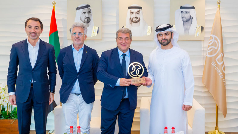 وخلال اللقاء، ثمّن رئيس نادي برشلونة الجهود التي يبذلها سمو الشيخ منصور بن محمد بن راشد آل مكتوم لجعل دبي وجهة لعشاق الرياضة عموماً، وكرة القدم بصورة خاصة، لما تتميز به من بنية تحتية متطورة، ومرافق رياضية ذات معايير عالمية، أسهمت في ترسيخ مكانتها كوجهة رياضية عالمية لاستضافة وتنظيم الأحداث والفعاليات الرياضية العالمية بنجاح وتميز.